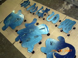 レーザーカット文字はWINDOWSフォント で加工可能です。切文字、抜き文字の 加工が可能です。MACフォントもスキャ ナー入力により加工可能です また、アクリルも10mmまで加工できま す。 ロゴやデザイン、デッサン等の加工 も、ご相談ください。挑戦させていただ きます。 |